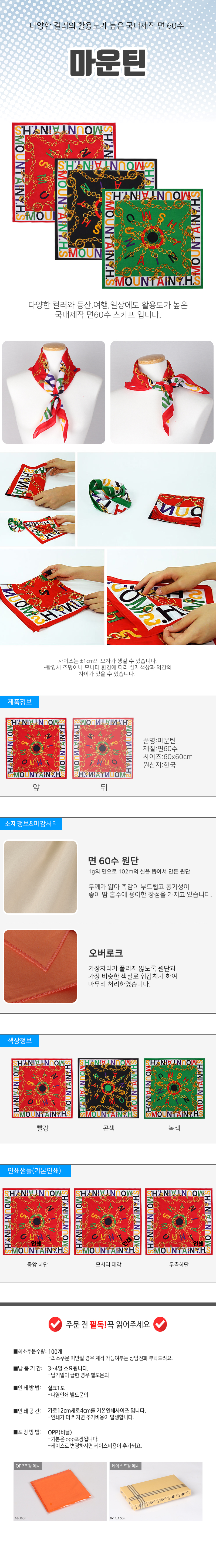 규격 •면60수 600 X 600 mm 색상